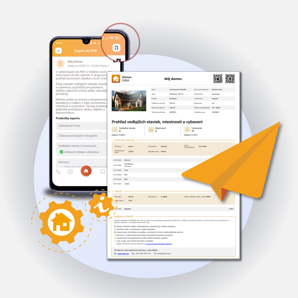 Ak už máte v aplikácii uložené vaše nehnuteľnosti či domácnosti, prinášame novú praktickú funkciu Export do PDF. Výsledkom je profesionálne pripravený PDF dokument, ktorý môžete ľahko uložiť, vytlačiť alebo poslať e-mailom. Je ideálny pri jednaniach s poisťovňou, pri predaji nehnuteľnosti alebo ako osobný archív všetkých detailov na jednom mieste.